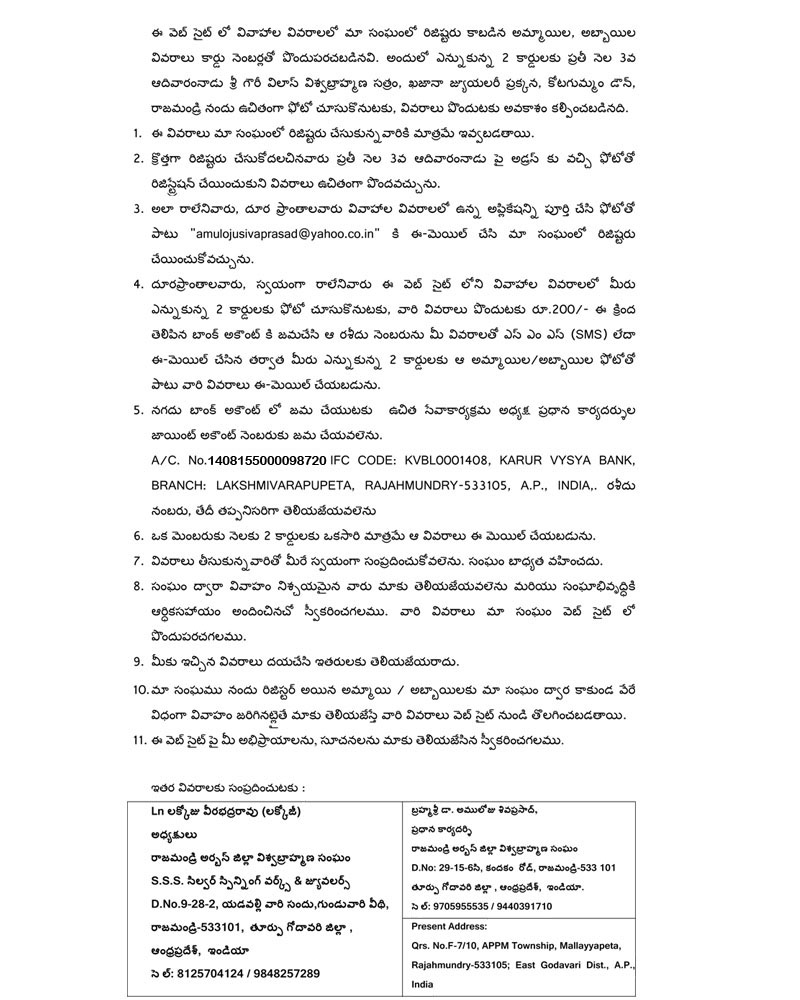 All Rights Reserved. Vishwa Brahmana Sangam, Rajahmundry