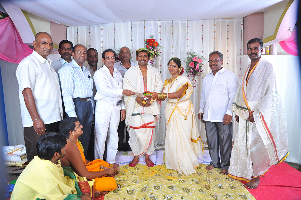 రాజమహేంద్రవరం అర్బన్ జిల్లా విశ్వబ్రాహ్మణసంఘం ఆధ్వర్యంలో ఉచితసేవా కార్యక్రమంలో భాగంగా 2011వ సంవత్సరం నుండి ప్రతీనెల 3వ ఆదివారంనాడు శ్రీగౌరివిలాస్ విశ్వబ్రాహ్మణసత్రం, ఖజానా జ్యూయలరి ప్రక్కన, కోటగుమ్మం డౌన్, రాజమండ్రి నందు జరుగుతున్న విశ్వబ్రాహ్మణ యువతీయువకుల వివరాల సేకరణ మరియు వితరణ కార్యక్రమంలో ఒకరినొకరు పరిచయమై ది.17.02.2016 వ తేదీన రాత్రి గం.8.28 ని.లకు చి.ల.సౌ. హారిక సిరితో చి. మణికంఠకు రిటైల్ క్లాత్ మర్చంట్స్ హాలునందు వివాహం జరిగిన సంధర్భంగా దంపతులకు శుభాకాంక్షల పత్రాన్ని అందించిన ప్రధానకార్యదర్శి మరియు సంఘసభ్యులు మరియు వియ్యంకులైన రాజమహేంద్రవరం వాస్తవ్యులు బ్రహ్మశ్రీ చిట్టూరి పాపాచారిగారు, తుని వాస్తవ్యులు బ్రహ్మశ్రీ కొమ్మోజు గౌరిశంకర్ గారు కళ్యాణ వేదికపై ఇరువురు కలసి దంపతులచేత సంఘ అధ్యక్షులు బ్రహ్మశ్రీ లక్కోజు వీరభద్రరావుగార్కి రూ.10,000/-లు సంఘానికి ఆర్ధికంగా సహాయమందించినందులకు ఉభయులకు సంఘం తరపున అభినందనలు.